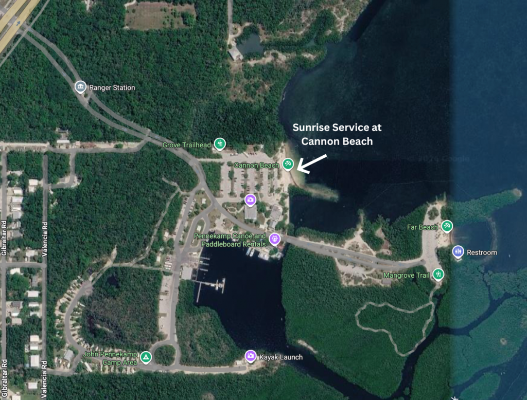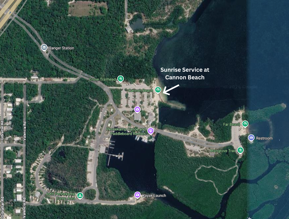 Join us as we celebrate the resurrection on Easter Sunday morning, April 5th. We will meet on Cannon Beach at John Pennekamp Coral Reef State Park in Key Largo at 6:45 am. We will enjoy the beautiful sunrise as we worship together.